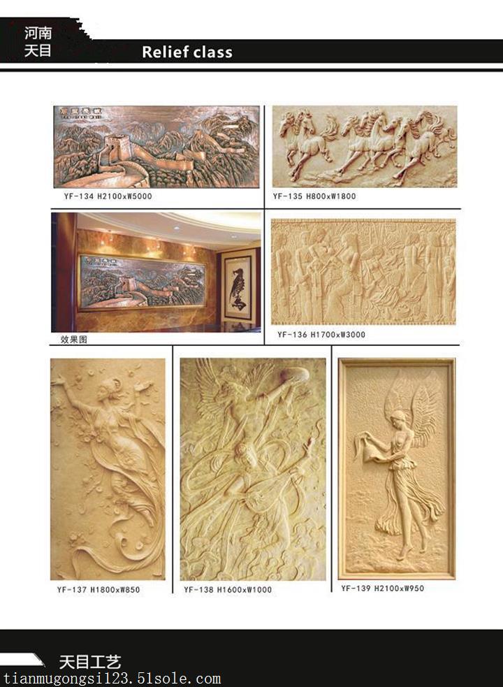 2.砂岩浮雕。在装饰风格上,砂岩浮雕创造出一种温暖调调的风格,简练典雅,温暖而又不失华丽气息。就耐用性而言,砂岩浮雕绝对可以与大理石和花岗岩不相上下。它不会变色或变色。一两百年前用砂岩浮雕修建的许多构筑物仍有着相同的风格和魅力。现有:四种白色砂岩浮雕,黄砂岩浮雕,木纹砂和景观砂。